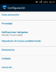 Primeramente, al entrar en la aplicacion pulsemos en Ajustes. Aparecerá una pantalla como la siguiente