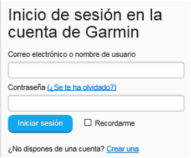 Accedamos al portal http://connect.garmin.com y pulsemos "Iniciar sesión". Aparecerá una página como de la derecha.